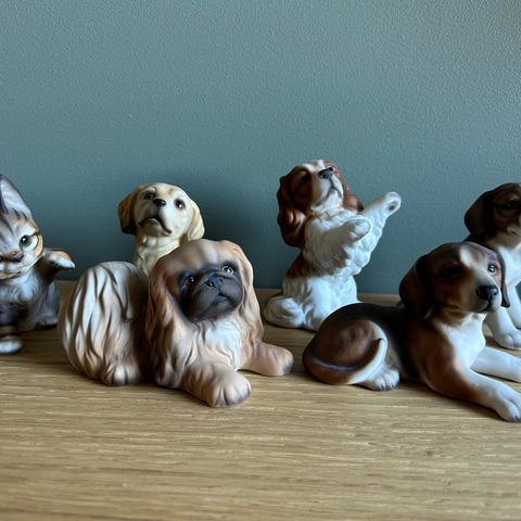 Beswick siameskatter porslinsfigurer set om tre i vit och brun glasyr. Figurerna föreställer tre siameskatter i olika storlekar och positioner. Tillverkade i glaserat porslin/keramik med stämplar från Beswick England på undersidan. Passar som prydnadsföremål i hemmet eller som samlarobjekt för den som är intresserad av djurfigurer och keramik. 3 storlekar. Finns I Örby / Älvsjö
