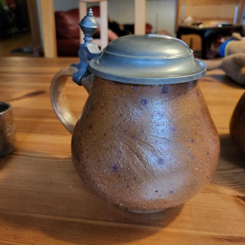 Höhr Grenzhausen ölsejdel keramik beige blå