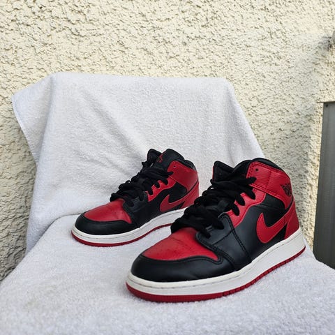 Air Jordan sneakers i storlek 45. Skorna har överdel i syntet och textil med snörning framtill. Färgkombination i rött, svart och vitt. Gummisula med mönster för grepp. Passar som vardagssko eller för lättare sport- och fritidsaktiviteter.