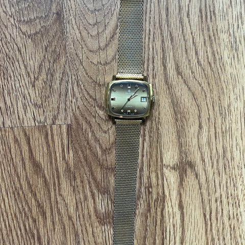 Klassisk Eweco armbandsur med en rektangulär boett och ett elegant mesharmband. Silverfärgad. Urtavlan har en tidlös design med tydliga markeringar och datumvisning. Perfekt för den som uppskattar vintage stil. Synliga repor (se bilder), i övrigt fint skick.