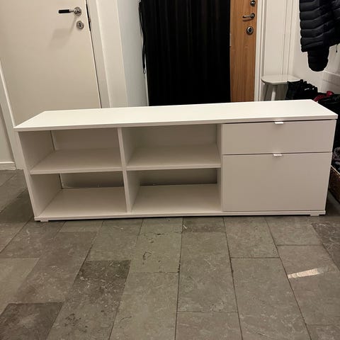 Säljer min PLATSA tv-bänk (160x42x83 cm) från IKEA, går att använda till annan typ av förvaring.