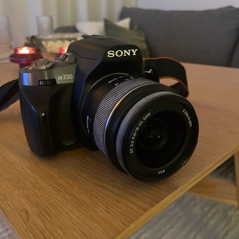 Systemkamera med tillbehör SONY alpha A58 svart. Objektiv + ny laddare/batteri/ billaddare + 2 remmar medföljer. I fint skick, fullt fungerande.