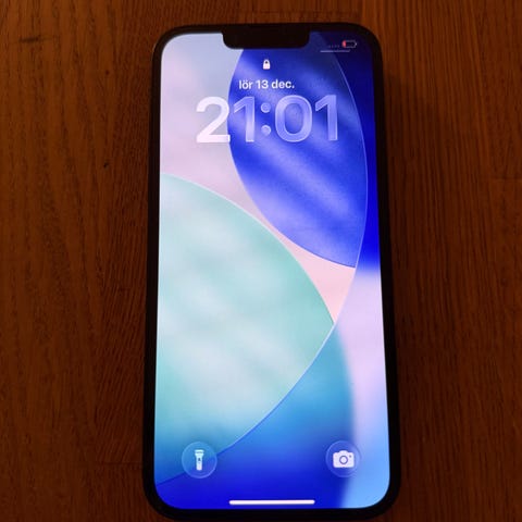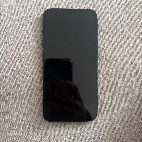 Apple iPhone 14 mobiltelefon med 128 GB internminne. Enheten har dubbla bakre kameror och framåtvänd kamera för foto och video. Färg: svart. Pekskärm på framsidan och glasbaksida. Lämplig för vardaglig användning som samtal, meddelanden, surf, appar och media. Bilderna visar telefonens skick, inklusive eventuella märken eller skador på hölje och glas.