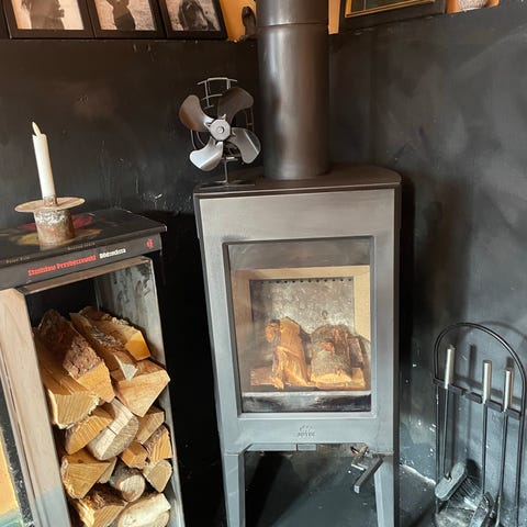 Braskamin i gjutjärn med dubbla glasdörrar framtill. Kaminen har en triangulär ovansida med rökutgång upptill. Insidan är utformad för vedeldning. Baksidan har ribbad konstruktion för värmeavgivning. Passar för installation i bostad där anslutning till skorsten finns och är godkänd enligt gällande regler.