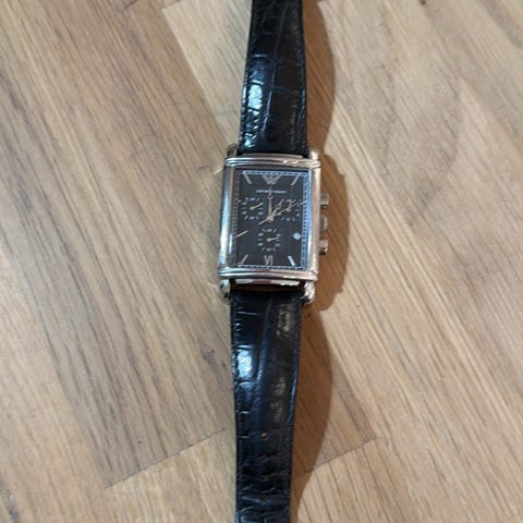 säljer min Armani klocka (AR0338). Har haft den i ett antal år. Sparsamt använd