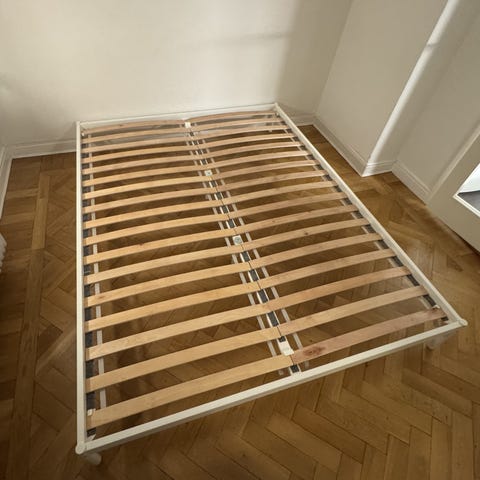 160 (2x80) IKEA ribbotten sängbotten i trä med fjädrande lameller och justerbara band.