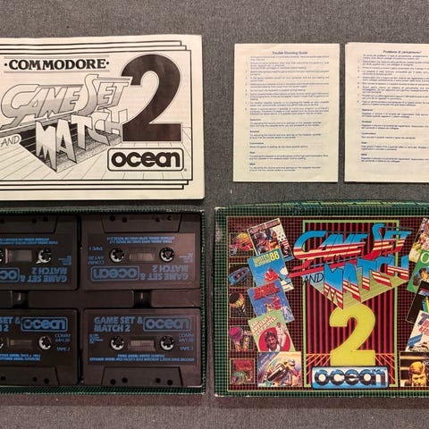 Följer med en hög med kasettband som har spel på sig.