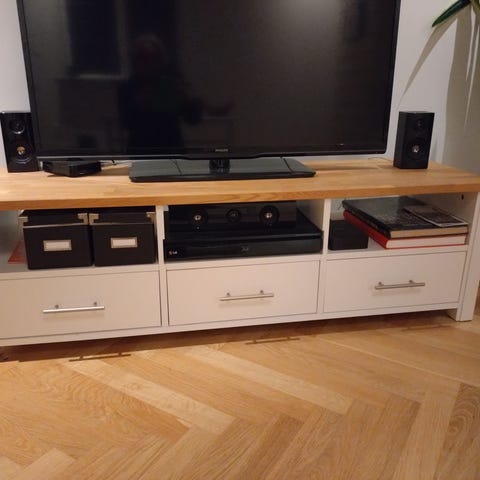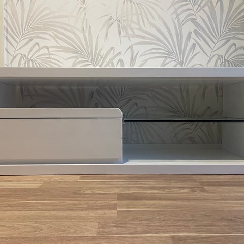 Stilren TV-vägg / mediabänk med LED-belysning – mycket fint skick