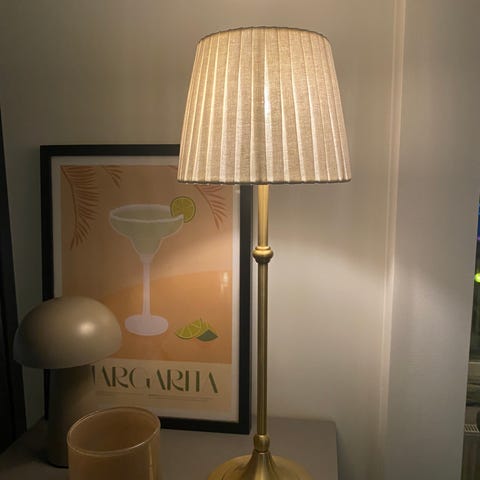 Säljer en fin bordslampa med vacker lampfot och sladd med strömbrytare.