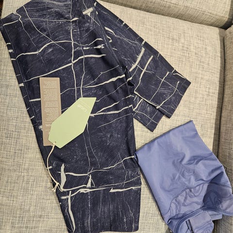 Linne och tigts, det står xxl i linne men är mer som M och byxorna står det inget i men är som S