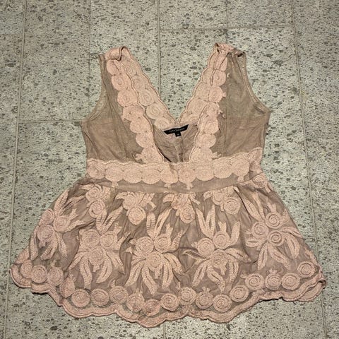 Linne topp dam storlek 38 spetsdetaljer ljusrosa