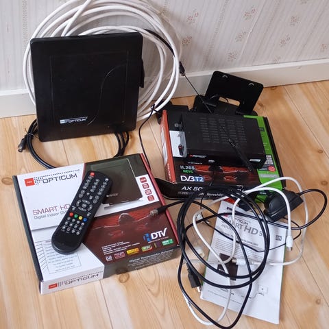 Comag SL 35 och Zernder DX610 digitala satellitmottagare. Dessa enheter används för att ta emot digitala satellit-TV-sändningar. På baksidan finns anslutningar för en koaxialantenn, två SCART-kontakter (TV och video) och andra anslutningar (se bilder). En fjärrkontroll ingår (se bild).