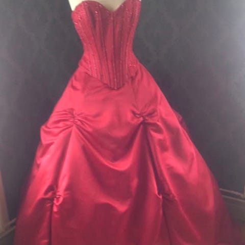 Röd korsett med svarta volanger stl XXL Ny! corset with flounce