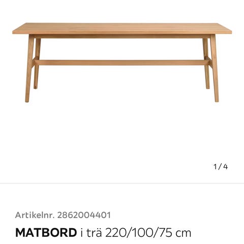 Fint matbord 200 cm i massiv ek. Skivan är i hela ekplank och inte som billigare varianter i ekstav. Bordet är tungt och väldigt stabilt.