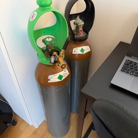 Denna heliumtank räcker till ca 23 st. normalstora latexballonger eller ca 3 st. stora siffer-/bokstavsballonger 102 cm.
