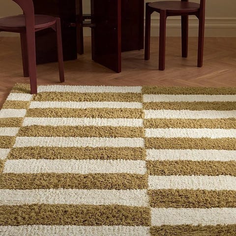 Färgen är beige med lätt melerad yta. Passar exempelvis under soffa eller matbord i vardagsrum eller liknande utrymme.