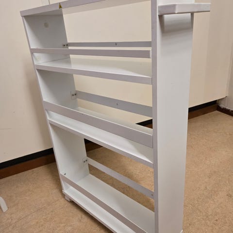 IKEA serveringsvagn/ hylla i vit metall med tre plan. Öppen modell med kant runt hyllplanen som hjälper till att hålla saker på plats. Toppskick!