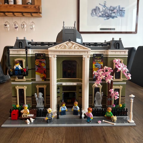 LEGO Architecture byggsats som föreställer Vita huset. Modellen visar huvudbyggnaden med kolonnprydd fasad, fontän, träd och omgivande flyglar. Passar som samlarobjekt eller utställningsmodell för hylla eller skrivbord. Byggsatsen består av mindre LEGO-delar i huvudsakligen vita, gröna och mörka nyanser och är avsedd för uppbyggnad av en detaljerad arkitekturmodell.