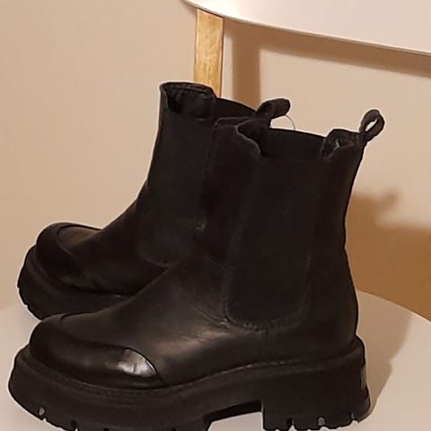 Svarta stövlar/ boots i chelsea-modell i storlek 40. Mycket fint skick, använda ett fåtal gånger. Stövlarna har slät ovandel med resår på sidorna och dragöglor fram och bak för enklare påtagning. Skinnfodrade med uttagbar innersula i skinn (oanvänd varm fårskinnssula ingår). Grov yttersula i gummi ger stabilitet och grepp. Se docksta.se, nypris ca 3.300 kr, köpta i nov-25.