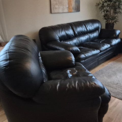 Tre sits soffa med två st fåtöljer i äkta skin