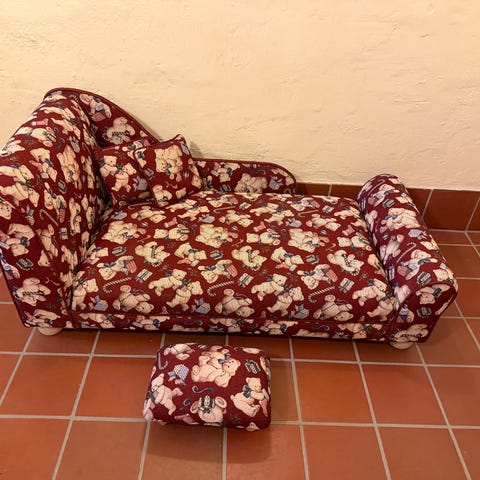 Professionellt klädd pall i möbeltyg.