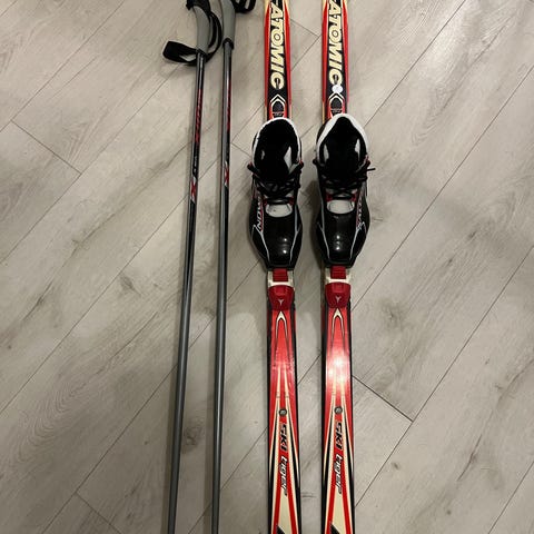 Ett riktigt fint paket för dig som vill ha bra glid i spåret. Skidorna är 210 cm långa och pjäxorna är av modellen Atomic Sport Classic i storlek 44 (innermått 28 cm). Utrustningen är sparsamt använd och i mycket gott skick.