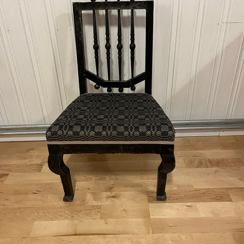 Stol i ek, stoppad sits och ryggstöd mönstrat tyg