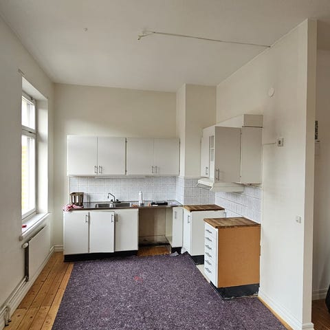 Vitvaror kan eventuellt säljas separat eller ingå enligt överenskommelse. Köket demonteras av köparen.