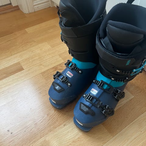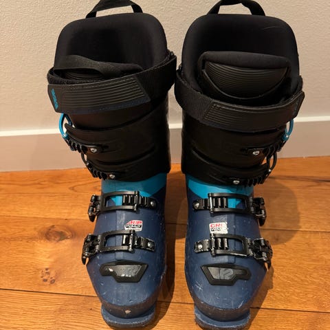 K2 Anthem pjäxor i blå och vit färg, storlek 27,5 cm (42/43). Pjäxan har fyra spännen och powerstrap för stabil passform. Yttersulan är kraftigt mönstrad för bra grepp vid gång. Pjäxorna har justerbara spännen och remmar för att kunna anpassas efter fot och underben. Passar för användning i vanliga alpina bindningar. Använda fyra dagar i backarna av junior som sedan växte ur dom.