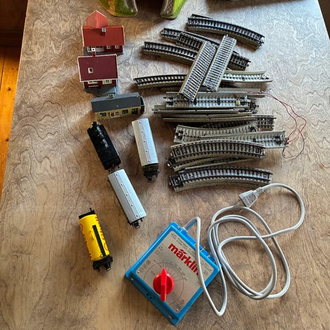 Märklin rälsdelar för modelljärnväg. Blandning av raka och böjda spår samt växlar syns i lådan, flera i originalförpackning. Vissa rälsdelar har tecken på rost och slitage medan delarna i orginal förpackningar ser väldigt bra ut och nästan i nyskick. 2000kr eller bud. Vid frågor eller funderingar skriv så pratar vi om saken.