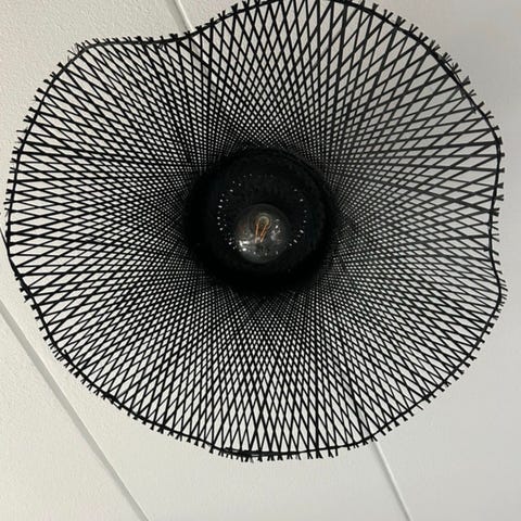 IKEA Sinnerlig taklampa i naturfärgad rotting. Lampan har en skärm i flätad rotting som ger ett mönstrat ljusspel i rummet. Avsedd för montering i tak och användning med standard ljuskälla med sockel som passar armaturen. Passar som allmänbelysning i exempelvis vardagsrum, sovrum eller matplats.