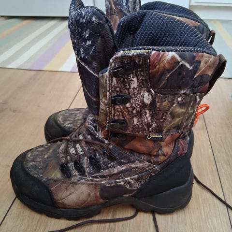 Le Chameau stövlar i grönt gummi. Hög modell med justerbart spänne upptill på skaftet. Insida i kontrastfärg. Grovmönstrad sula som ger bra grepp på vått och lerigt underlag. Lämpliga som regn- eller jaktstövlar samt för utomhusbruk i fuktiga miljöer.