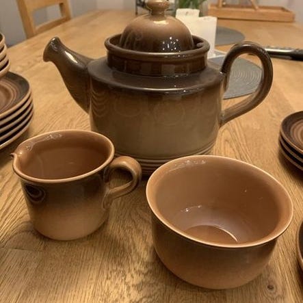 Rörstrand servis i porslin i brunvitt mönster från 70- talet.