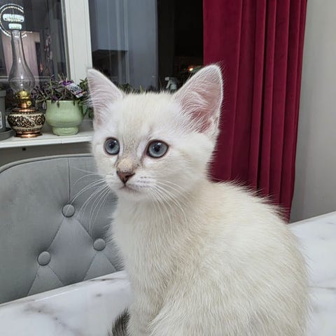 Den grå kallar vi Yoda då han är mindre än de andra och har ett skojigt face. Otroligt gullig kattunge. Svårt o beskriva honom men han är en karaktär svår att efterlikna.