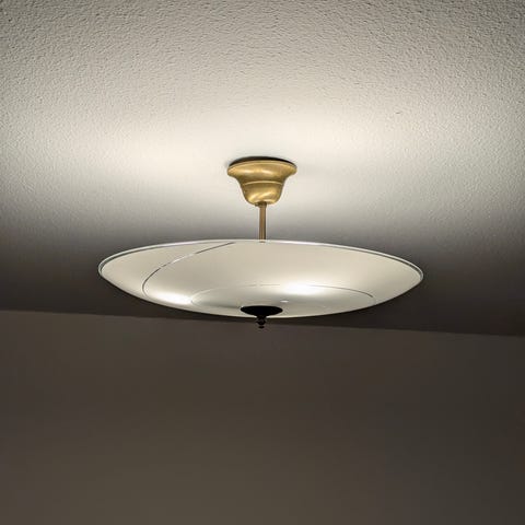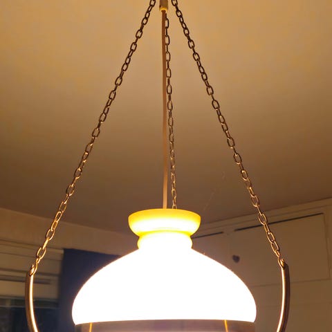 Höjd: glaskupa --> lamfästet i mässing, ca 70 cm.