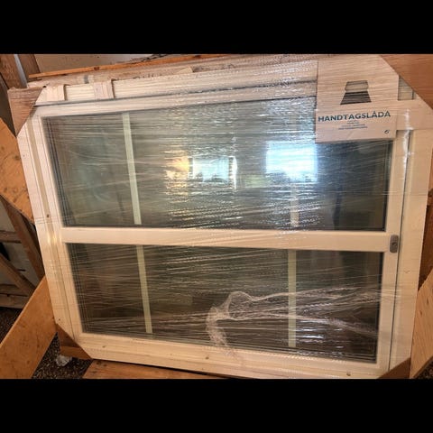 Grönfärg på karmen insida, går att ta bort eller dölja med smygarna.