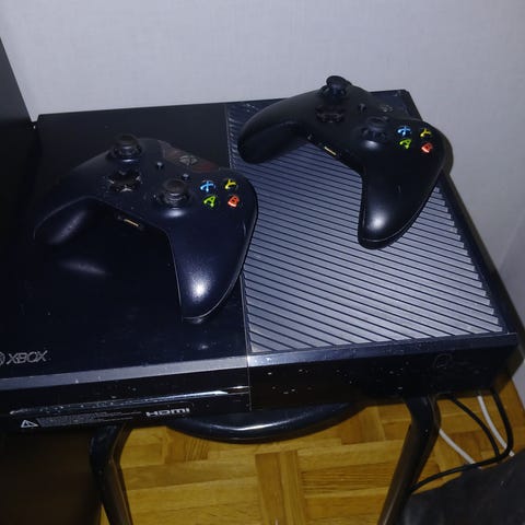 Xbox One med två trådlösa handkontroller.