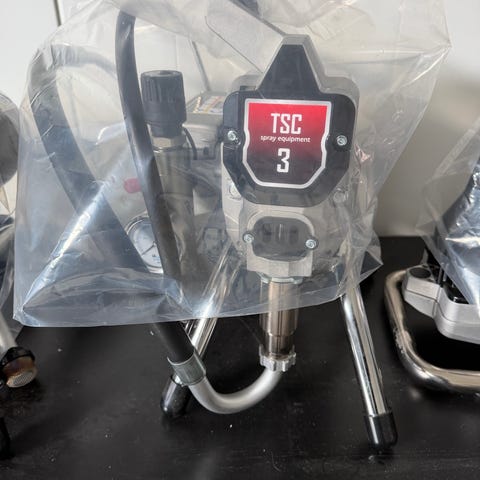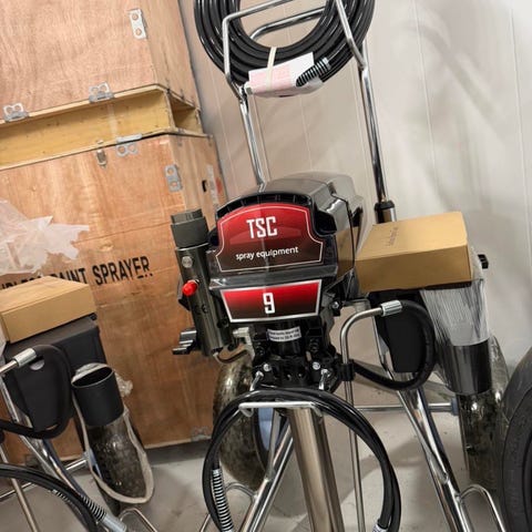 Professionell sprututrustning för målning av större ytor.Passar för sprutmålning av väggar, tak och andra bygg- och renoveringsarbeten där färg behöver appliceras med spruta.