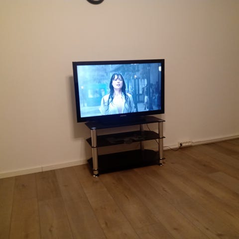 Samsung tv med bordsstativ. Modellen har flera anslutningsmöjligheter på baksidan, bland annat HDMI, komponent- och kompositingångar samt VGA och ljudanslutningar. Passar för anslutning av exempelvis digitalbox, spelkonsol eller dator. Färg: svart.