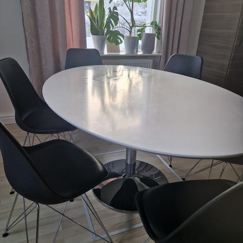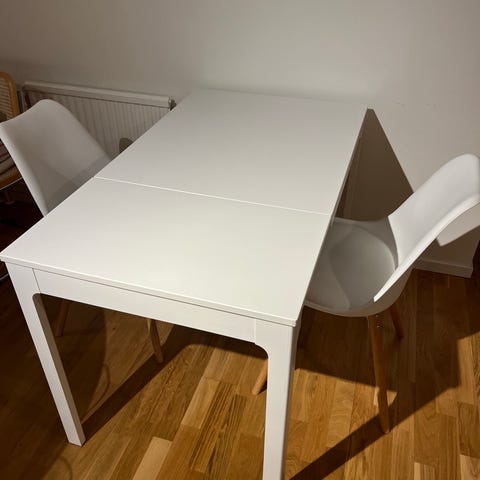 I give away this dining table (without the chairs). It is 200 cm long with posibility to extend to 280. You just need to come and pick it up in Porsögården. It is from Jysk.