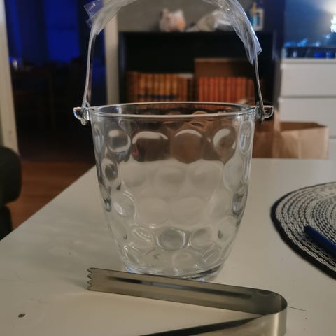 Glasbehållare / ishink i kraftigt strukturglas med metallhandtag