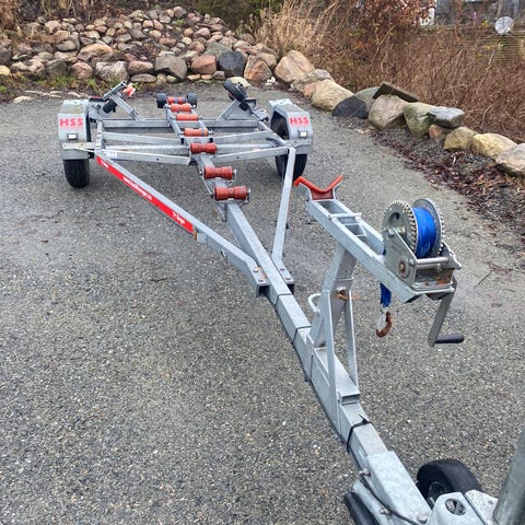Brenderup båttrailer i galvaniserat stål. Utrustad med vinsch, stödhjul och rullar för stöd av skrov. Bakre delen har ljusramp med bakljus och reflexer. Avsedd för transport av mindre till medelstora båtar på väg. Passar för användning vid sjösättning och upptagning av båt samt för förvaring och förflyttning mellan olika platser.