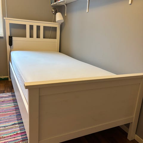 Fint skick, du kan ställa ryggdelen och bendelen. 90x200 cm. Säljes p g a flytt. Finns inne i Nyköpings centrum.