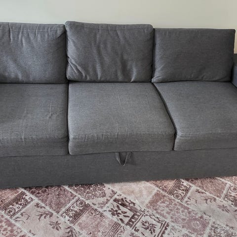 Grå bäddsoffa Friheten säljes pga flytt. Rök och djurfritt hem. Finns I Haninge