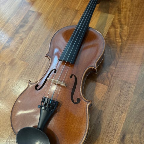 Fiol i brun träfinish med svart greppbräda och hakstöd. Instrumentet levereras i formpassat hårt etui med mjuk invändig stoppning. I etuiet ingår två stråkar, axelkudde och ljuddämpare. Passar bra för nybörjare och övning hemma. Vivaldi model no VL904.