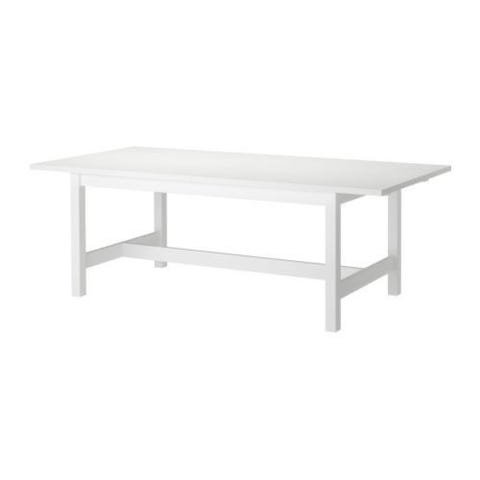 Vitt bord med iläggsskiva på 60 cm som sitter i bordet.