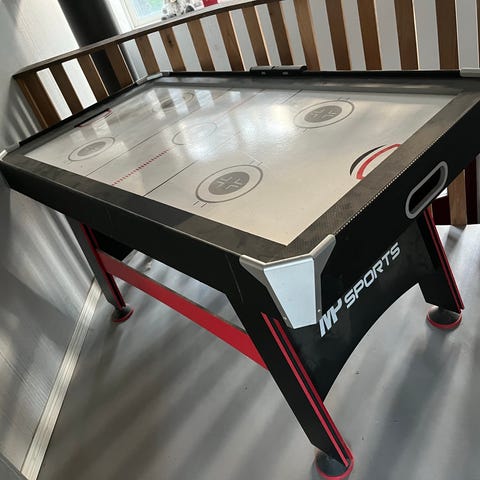 Air hockey bord i bra skick med möjlighet att göra om till pingisbord. Mått: 120x56cm