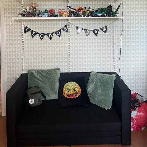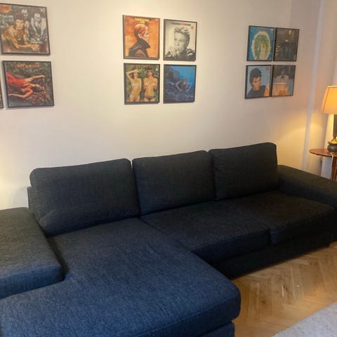 Mio hörnsoffa bäddsoffa mörkgrå tyg - Bortskänkes mot snabb hämtning