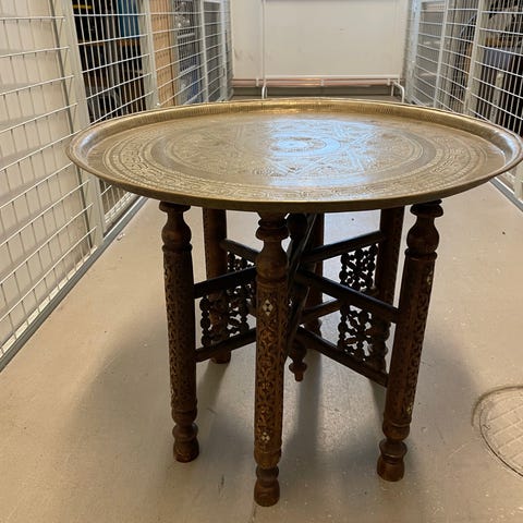 samovar i NS, Voronzov fabriken, 18 hundra talet.med tillhörande skål och bricka. Samovaren har handtag och detaljer i trä samt tappkran framtill. Den är avsedd för uppvärmning och servering av tevatten och kan användas som tekokare eller värmebehållare. Metallutförandet gör den lämplig för användning i kök eller serveringsmiljöer där man vill hålla vatten varmt under längre tid.