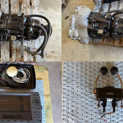 Komplett med styrning, motor och batterikablar, skrovgenomföring och beslag.